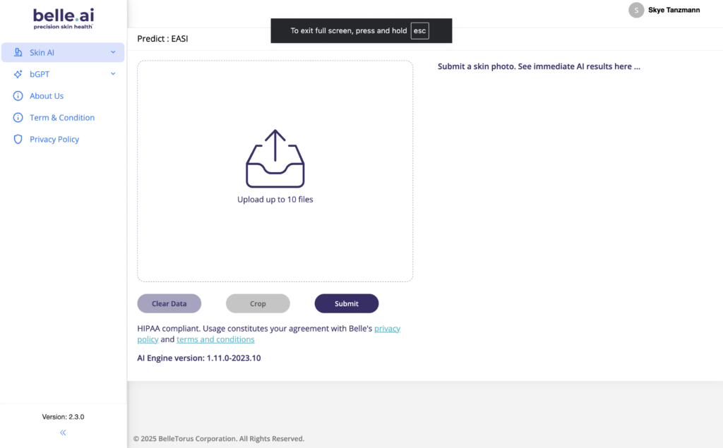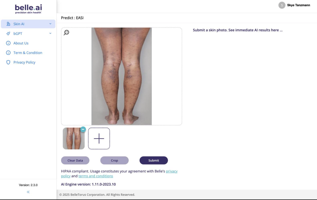 - The model will produce an AI-predicted EASI score and clinicians may move the slider bars to create a Clinician Adjusted Score.