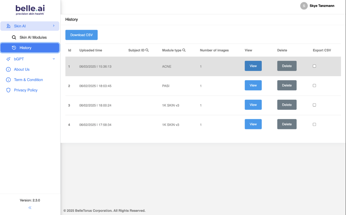 - You may revisit previous analyses via the History tab (located on the sidebar) which automatically saves previous results. Note: comments on such analyses must be saved manually by clicking the “Save" button.